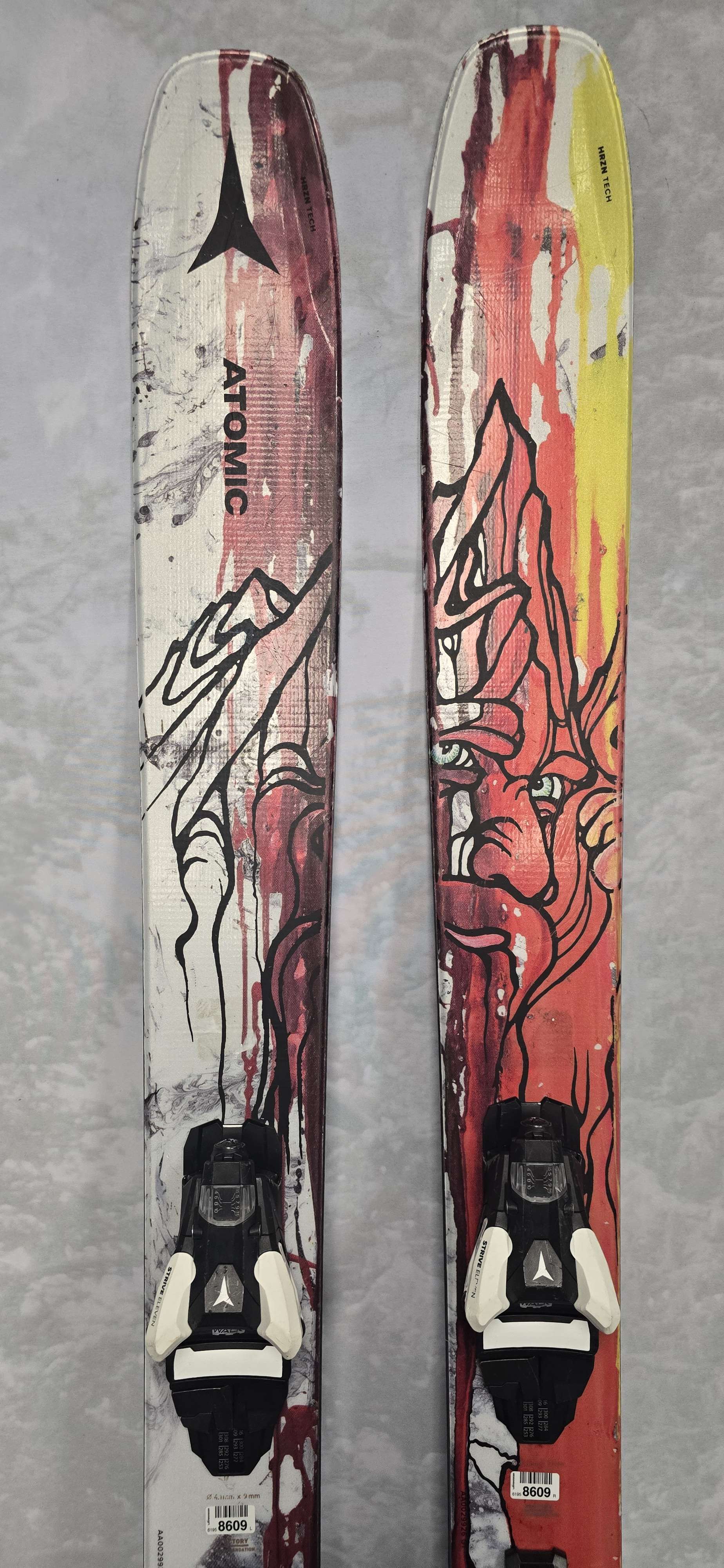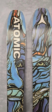 "The Atomic Bent 110 takes a similar approach to the mountain as the Bent Chetler 120, with slightly less width. It’s Jossi Wells’s go-to ski for backcountry freestyle, charging lift-served pow laps and days where it’s deep, but not 120-deep. The Bent 110 is designed with HRZN Tech Tip and Tail for a playful performance and better float through blower without adding bulk to the ski. The 110 features a bit less rocker in the tail than the 120 but still charges through variable chop and crud. A Light Woodcore reduces weight and keeps the performance responsive. With topsheet and base art by Chris Benchetler, the 110 is wholly reflective of his approach to the mountains: creative and unique."
